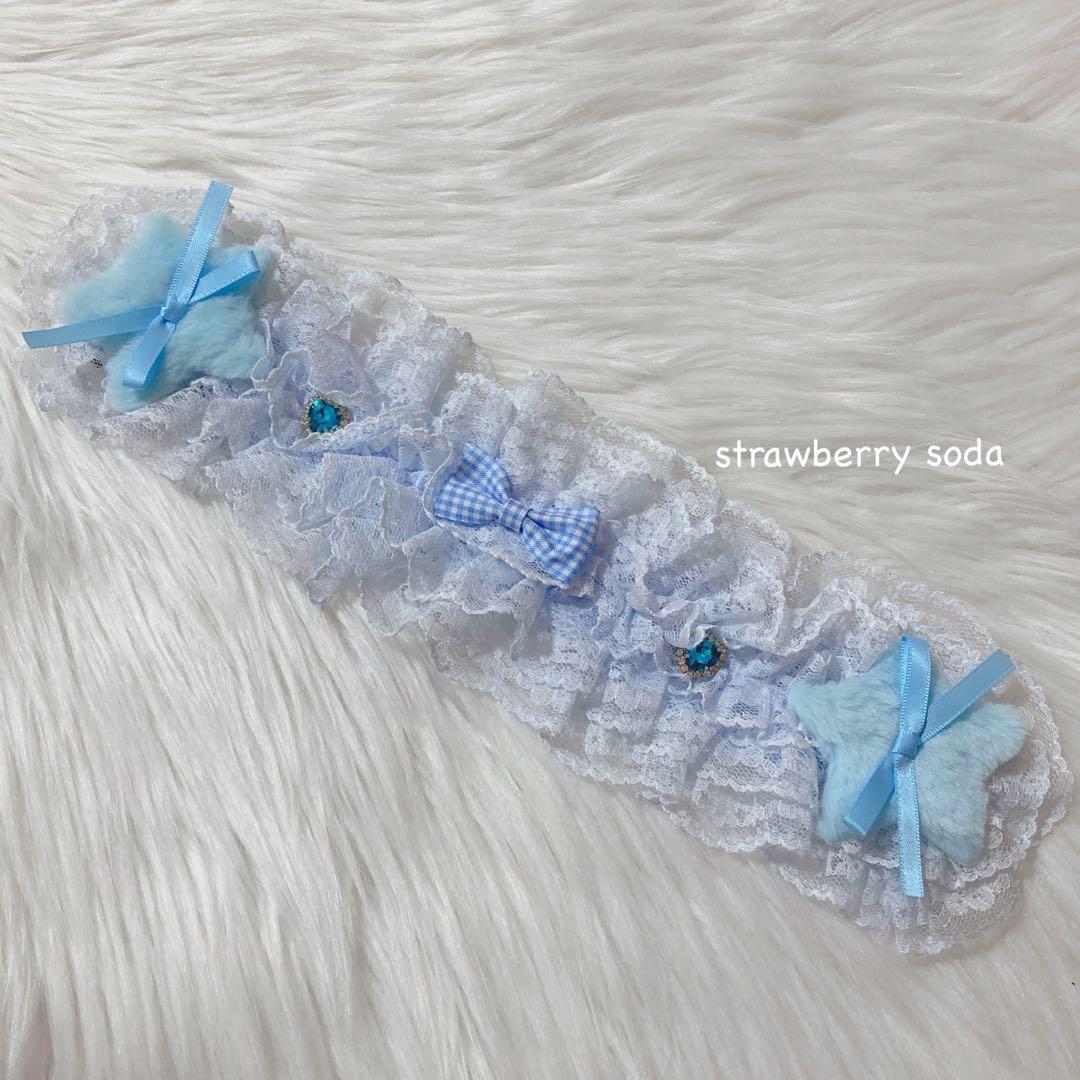 星 ハート ビジュー リボン ライトブルー ヘッドドレス