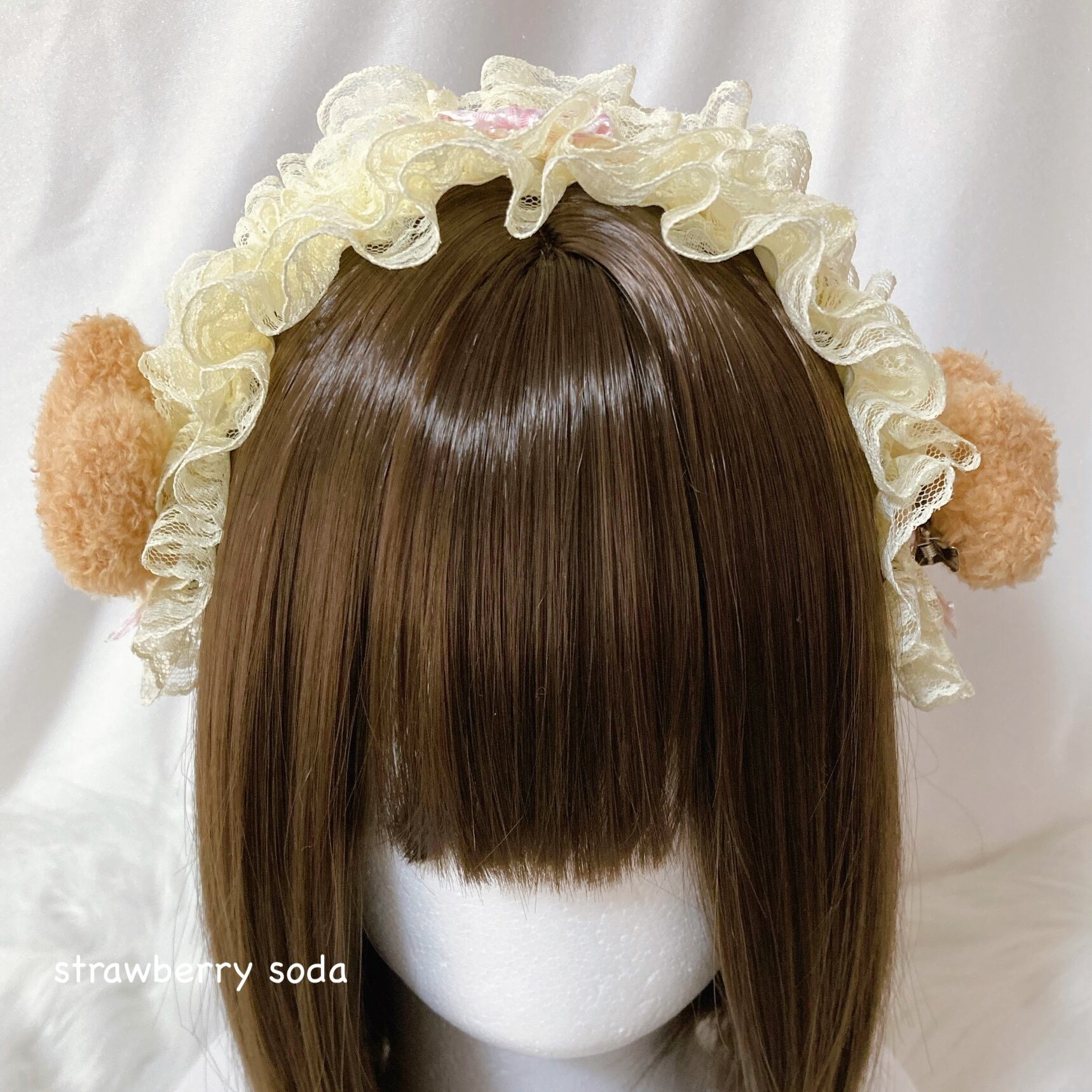 モコモコのくまさんが付いた可愛いヘッドドレス*୨୧⑅