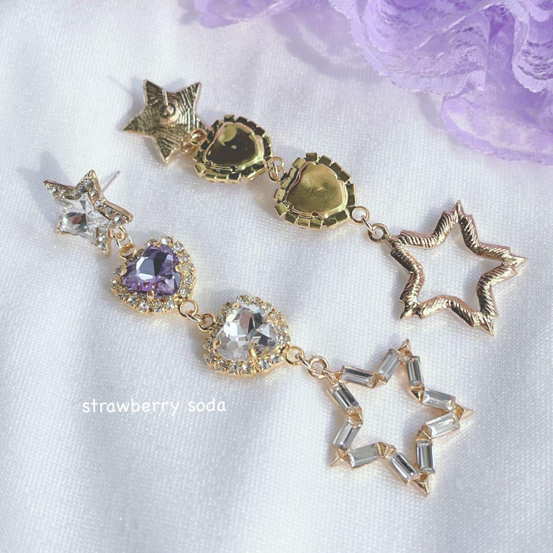 クリア パープル ハート スター ピアス