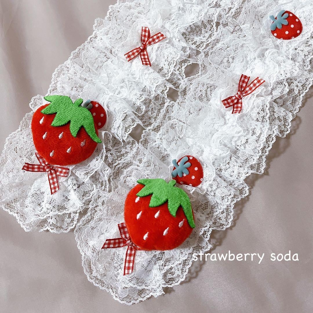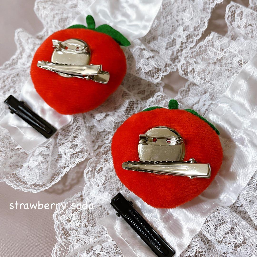 いちご ヘアクリップ&ブローチ付き レッド リボン ヘッドドレス
