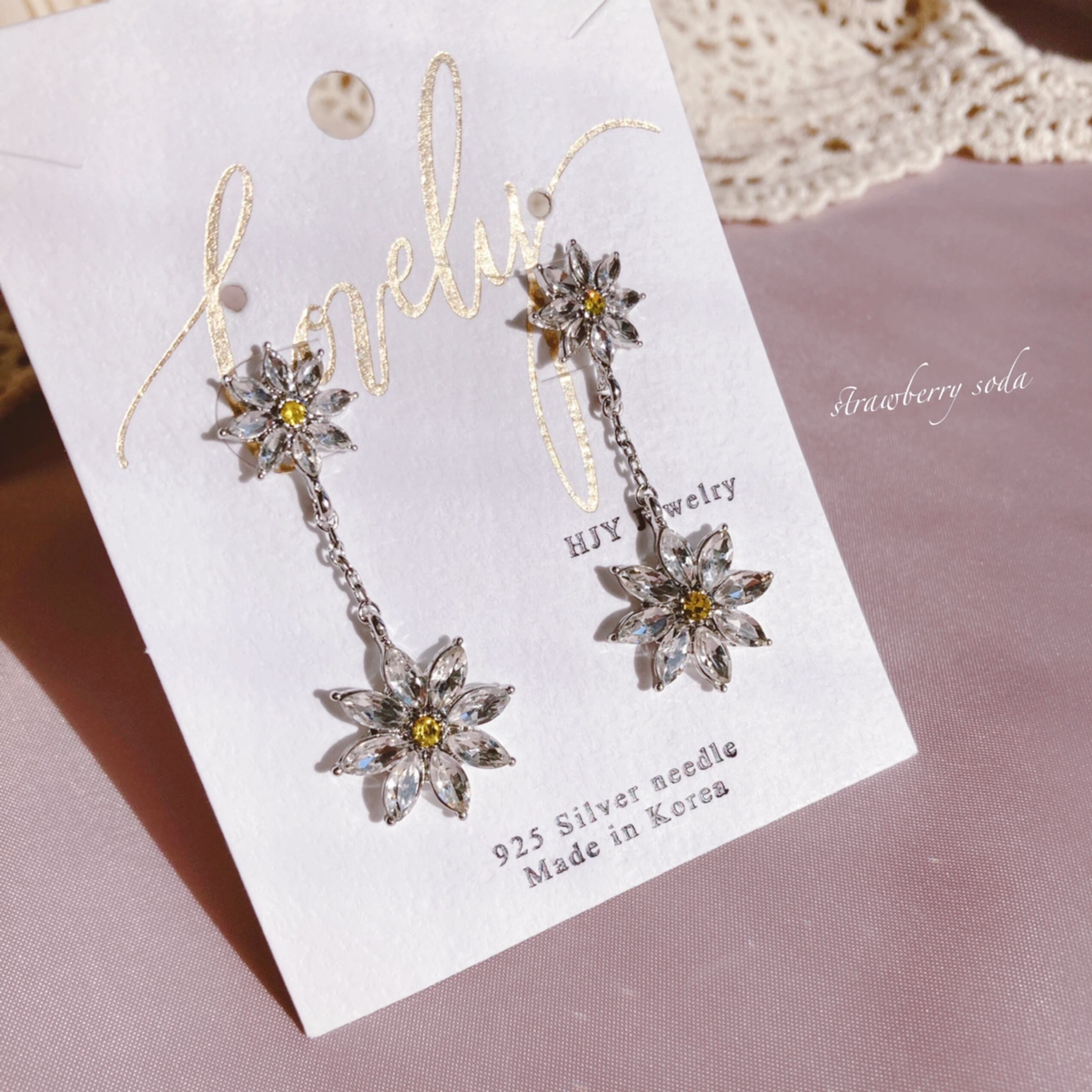 ダブル クリスタル リトル フラワー ピアス&イヤリング