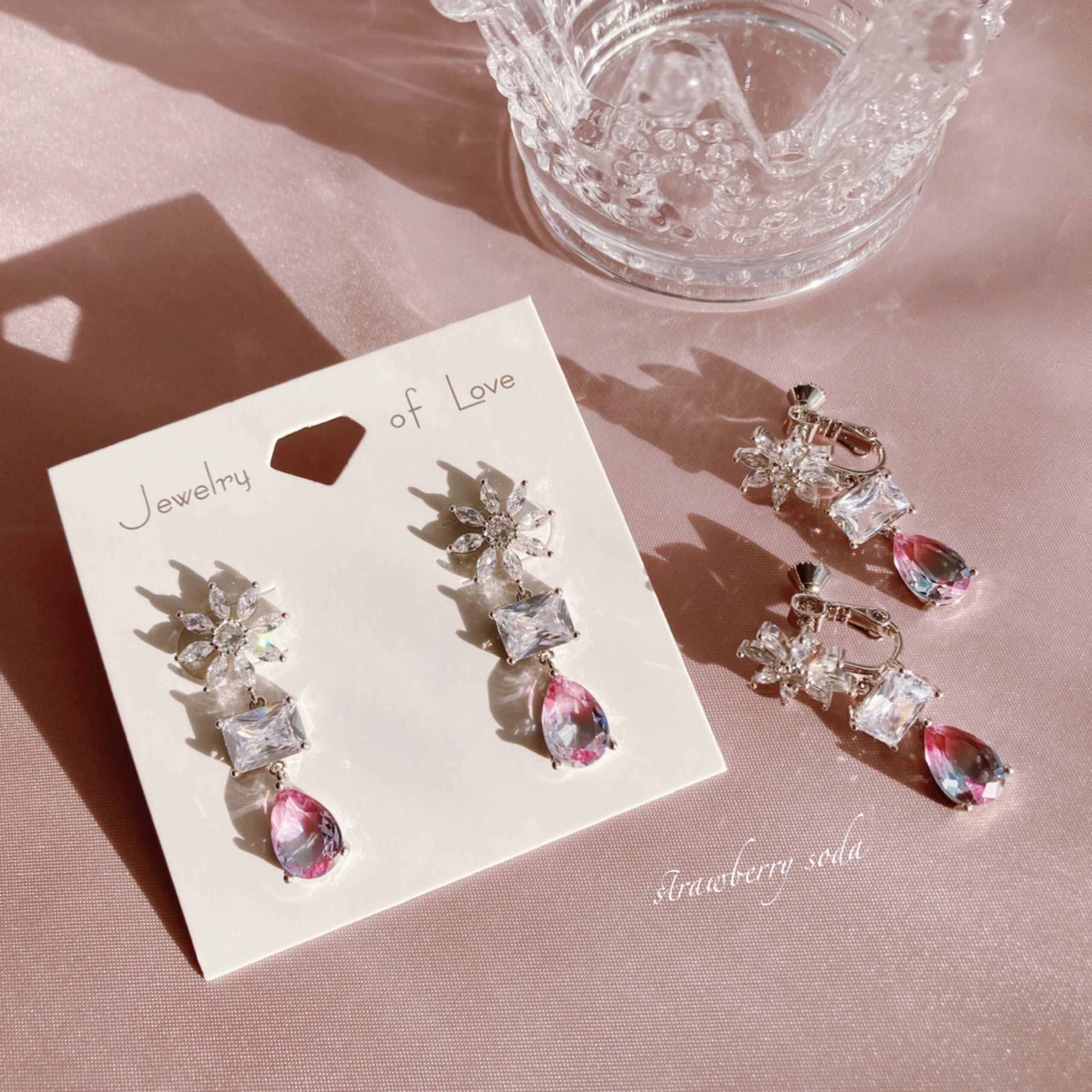 クリスタル フラワー オーロラ ドロップ ミニピアス&イヤリング