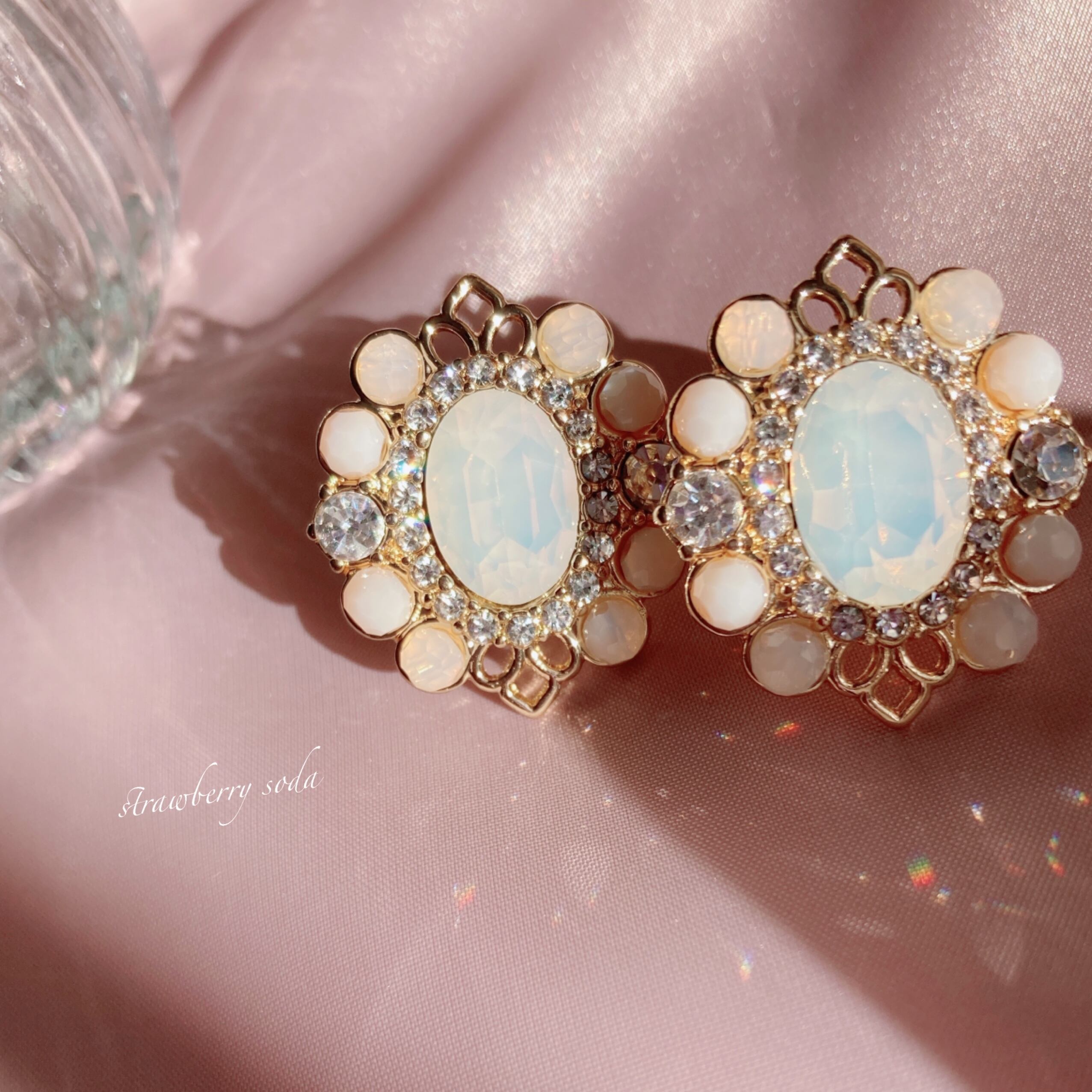 ※イヤリングパーツ(ネジや開閉部分)が若干硬い場合がございますので予めご了承ください。